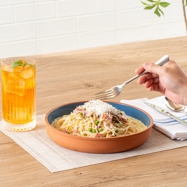 34 OZ TERRACOTTA CAZUELA BOWL - BLUE GLAZED INTERIOR, OVEN-SAFE
