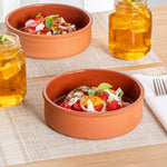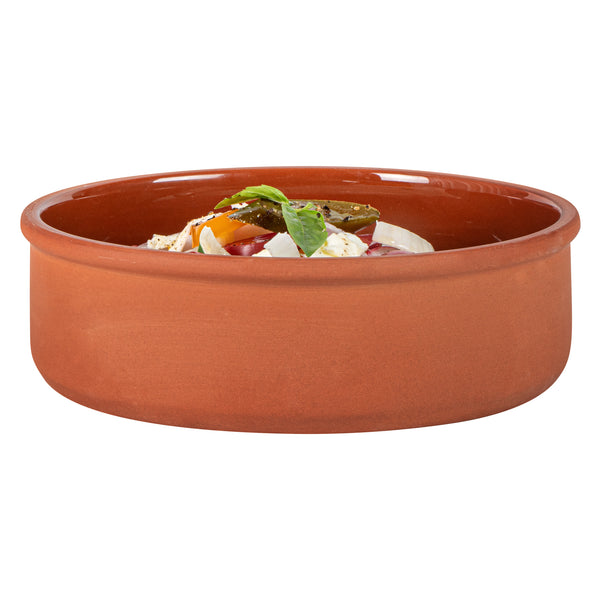 Enhance your culinary presentations with versatile serving solutions. The Terra Tek Glazed Interior Terracotta Cazuela Bowl offers a 7.5-inch diameter, perfect for presenting traditional Spanish tapas or hearty individual portions. Its brown glazed interior not only enhances the visual appeal of your dishes but also ensures easy food release and cleaning. Constructed from premium terracotta, it delivers excellent heat retention and is designed for seamless oven-to-table service, allowing chefs to present piping hot dishes directly to diners. This oven to table bowl also supports microwave use, facilitating quick reheats without the hassle of transferring food. Its dishwasher-safe design means efficient cleanup, saving valuable time and effort after service. Whether serving soups, stews, or casseroles, this terracotta cazuela bowl is the perfect choice for any foodservice establishment. Each order includes 2 Terra Tek Glazed Interior Terracotta Cazuela Bowls.