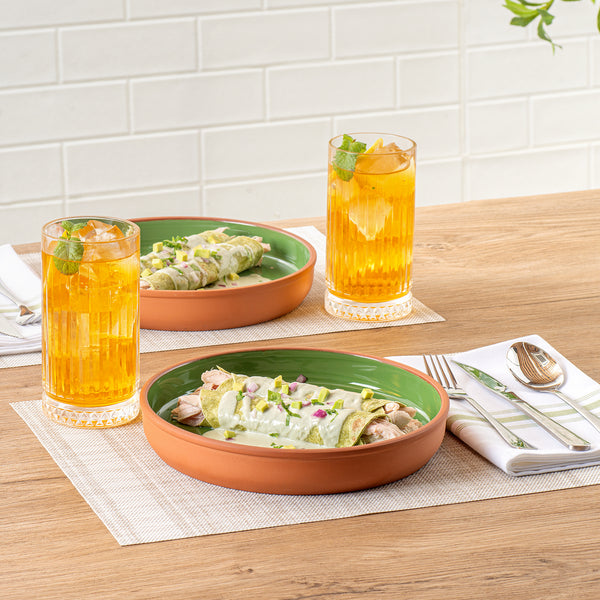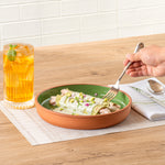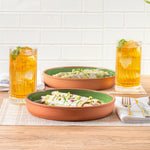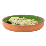 Experience traditional Spanish cuisine with our Terra Tek 34-ounce Terracotta Cazuela Bowls. These recyclable cazuela bowls, crafted from durable terracotta, bring a touch of authenticity to any dining setting. Featuring a vibrant green glazed interior, these greaseproof glazed bowls add a splash of color and sophistication to your culinary creations. Perfect for various uses, these cooking bowls can be taken straight from the oven to the table. These microwave cooking bowls allow for quick and convenient reheating of dishes, ensuring your meals are always served at the perfect temperature. Conveniently freezable, these gourmet kitchen bowls provide a practical solution for food storage and meal preparation. With their dishwashable design, cleanup is a breeze. Containing up to 34 ounces, these reusable terracotta cazuelas measure 9.25 inches in diameter by 1.5 inches in height and are perfect for serving hearty stews or paellas, making them a versatile addition to any kitchenware collection. Sold in a 10 count box.