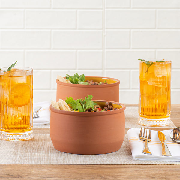 34 OZ TERRACOTTA CAZUELA BOWL - YELLOW GLAZED INTERIOR, OVEN-SAFE