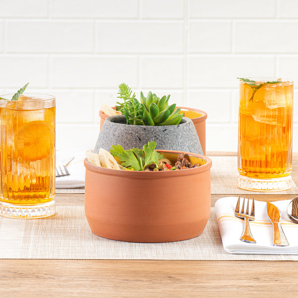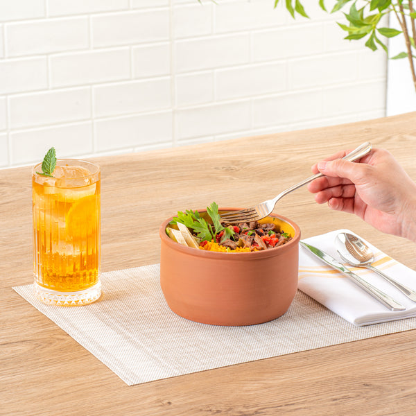 Savor the rustic charm of our Terra Tek 34-ounce Terracotta Cazuela Bowls. Handcrafted from durable terracotta, these recyclable cazuela bowls bring an earthy elegance to any table setting. With their greaseproof glazed bowls, the rich yellow interior offers a striking contrast to the exterior, enhancing the visual appeal of your dishes. Designed for versatility, these cooking bowls can go straight from the oven to the table, making food prep and serving a breeze. For those quick and easy meals, these microwave cooking bowls are a time-saver, ensuring your food is heated evenly and efficiently. Conveniently freezable, these terracotta cazuelas allow for easy food storage, preserving the freshness and flavor of your culinary creations. These gourmet kitchen bowls are dishwashable, making maintenance effortless. Holding up to 34 ounces and measuring 6.25 inches in diameter by 3.5 inches in height, these terracotta cazuela bowls are ideal for serving hearty meals. Sold in a 10 count box.