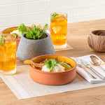 34 OZ TERRACOTTA CAZUELA BOWL - YELLOW GLAZED INTERIOR, OVEN-SAFE