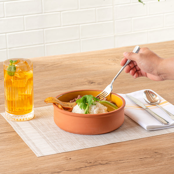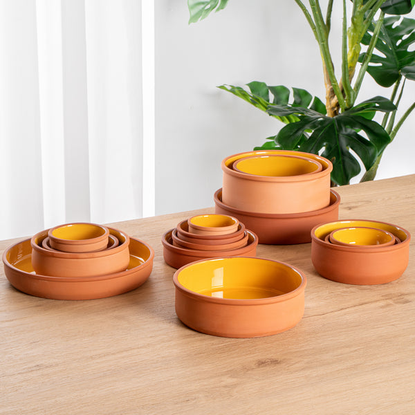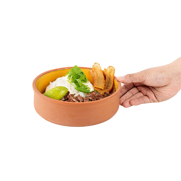 34 OZ TERRACOTTA CAZUELA BOWL - YELLOW GLAZED INTERIOR, OVEN-SAFE
