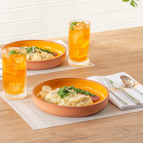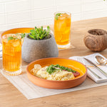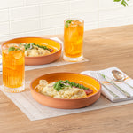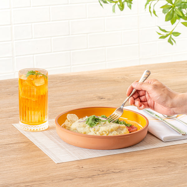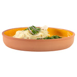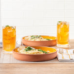 Offer an authentic, traditional cooking experience with our Terra Tek 34-ounce Terracotta Cazuela Bowls. Crafted from durable terracotta, these recyclable cazuela bowls offer an unparalleled cooking performance with the ability to evenly distribute heat across the surface. Featuring a beautiful yellow glazed interior, these greaseproof glazed bowls not only enhance your food presentation but also make for easy cleaning. Oven-ready and microwavable, these cooking bowls are perfect for preparing a variety of dishes, from slow-cooked stews to baked desserts. These microwave cooking bowls are freezable and dishwashable, ensuring easy storage and cleaning for your busy kitchen operations. Ideal for any gourmet kitchen, these reusable terracotta bowls bring a touch of rustic charm to your table setting while offering practical functionality. With a generous capacity of 34 ounces and measuring 9.25 inches in diameter by 1.5 inches in height, these terracotta cazuelas are perfect for serving hearty meals. Sold in a 10 count box.