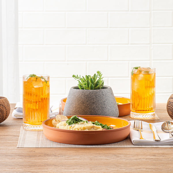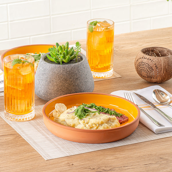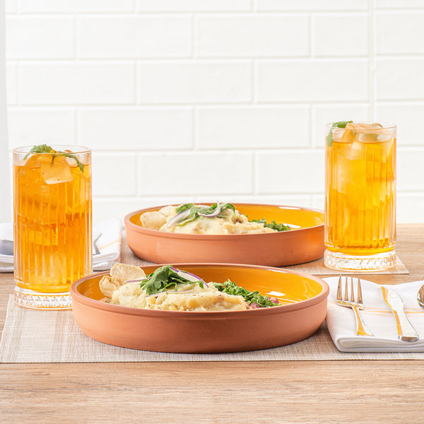 Offer an authentic, traditional cooking experience with our Terra Tek 34-ounce Terracotta Cazuela Bowls. Crafted from durable terracotta, these recyclable cazuela bowls offer an unparalleled cooking performance with the ability to evenly distribute heat across the surface. Featuring a beautiful yellow glazed interior, these greaseproof glazed bowls not only enhance your food presentation but also make for easy cleaning. Oven-ready and microwavable, these cooking bowls are perfect for preparing a variety of dishes, from slow-cooked stews to baked desserts. These microwave cooking bowls are freezable and dishwashable, ensuring easy storage and cleaning for your busy kitchen operations. Ideal for any gourmet kitchen, these reusable terracotta bowls bring a touch of rustic charm to your table setting while offering practical functionality. With a generous capacity of 34 ounces and measuring 9.25 inches in diameter by 1.5 inches in height, these terracotta cazuelas are perfect for serving hearty meals. Sold in a 2 count box.