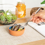 Enhance your dining experience with versatile cooking solutions. The Terra Tek Blue Glazed Interior Terracotta Bowl boasts an oven and microwave-safe design, allowing chefs to efficiently prepare and reheat dishes, saving valuable kitchen time. With its stunning blue glazed interior, this terracotta bowl enhances the presentation of both meals and desserts. Crafted from durable terracotta, it stands up to high temperatures, ensuring longevity and reliability in bustling kitchens. The compact dimensions of 3.9 inches by 3.9 inches by 1.6 inches make this cazuela bowl ideal for serving tapas, sides, or individual desserts, optimizing table space in restaurants and catering events. Additionally, its dishwashable design facilitates quick and effortless cleaning, allowing staff to focus on customer satisfaction. Elevate your serveware with these small serving bowls, perfect for creating memorable dining experiences. Each order includes 10 Terra Tek Blue Glazed Interior Terracotta Bowls.