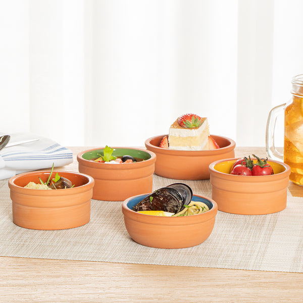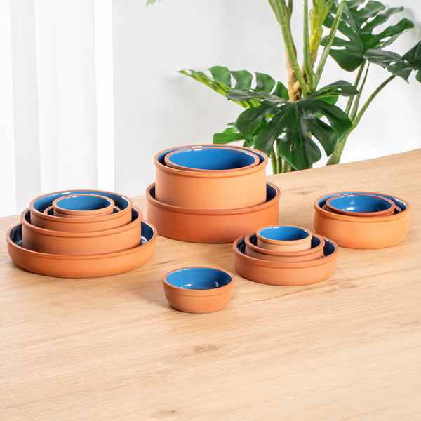 5 OZ TERRCOTTA CAZUELA BOWL - BLUE GLAZED INTERIOR, OVEN-SAFE