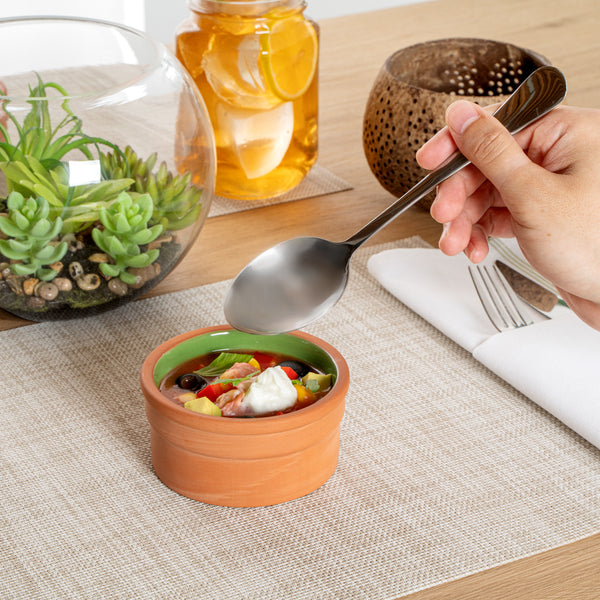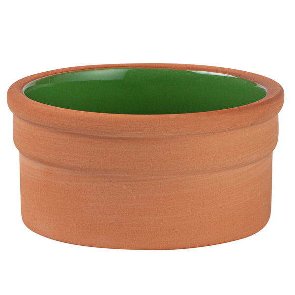 5 OZ TERRCOTTA CAZUELA BOWL - GREEN GLAZED INTERIOR, OVEN-SAFE