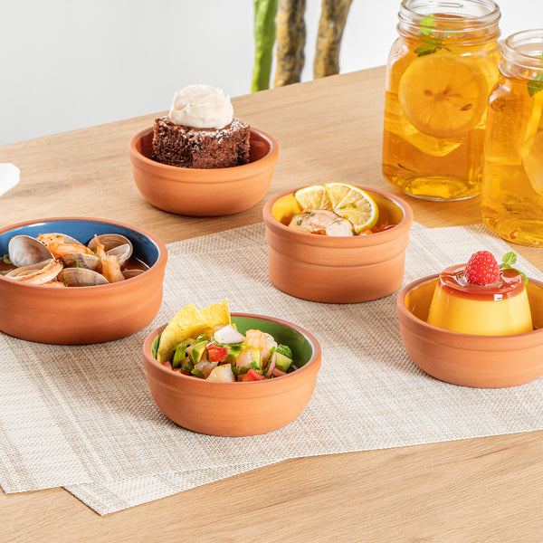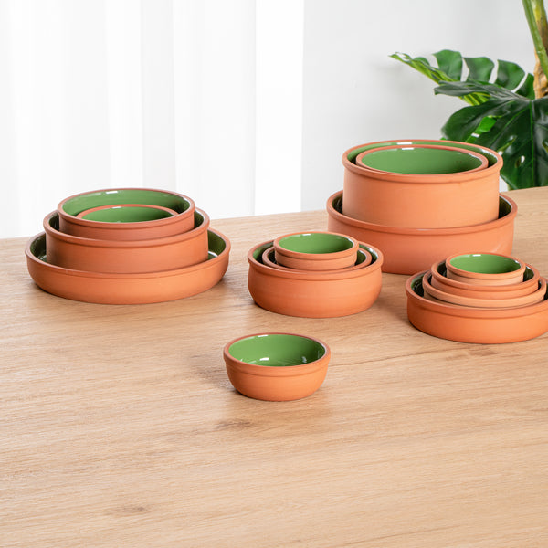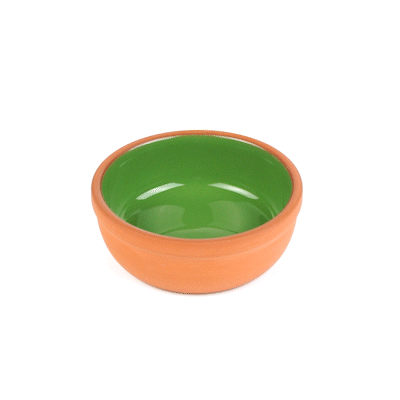 5 OZ TERRCOTTA CAZUELA BOWL - GREEN GLAZED INTERIOR, OVEN-SAFE