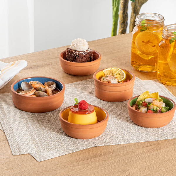 5 OZ TERRCOTTA CAZUELA BOWL - YELLOW GLAZED INTERIOR, OVEN-SAFE