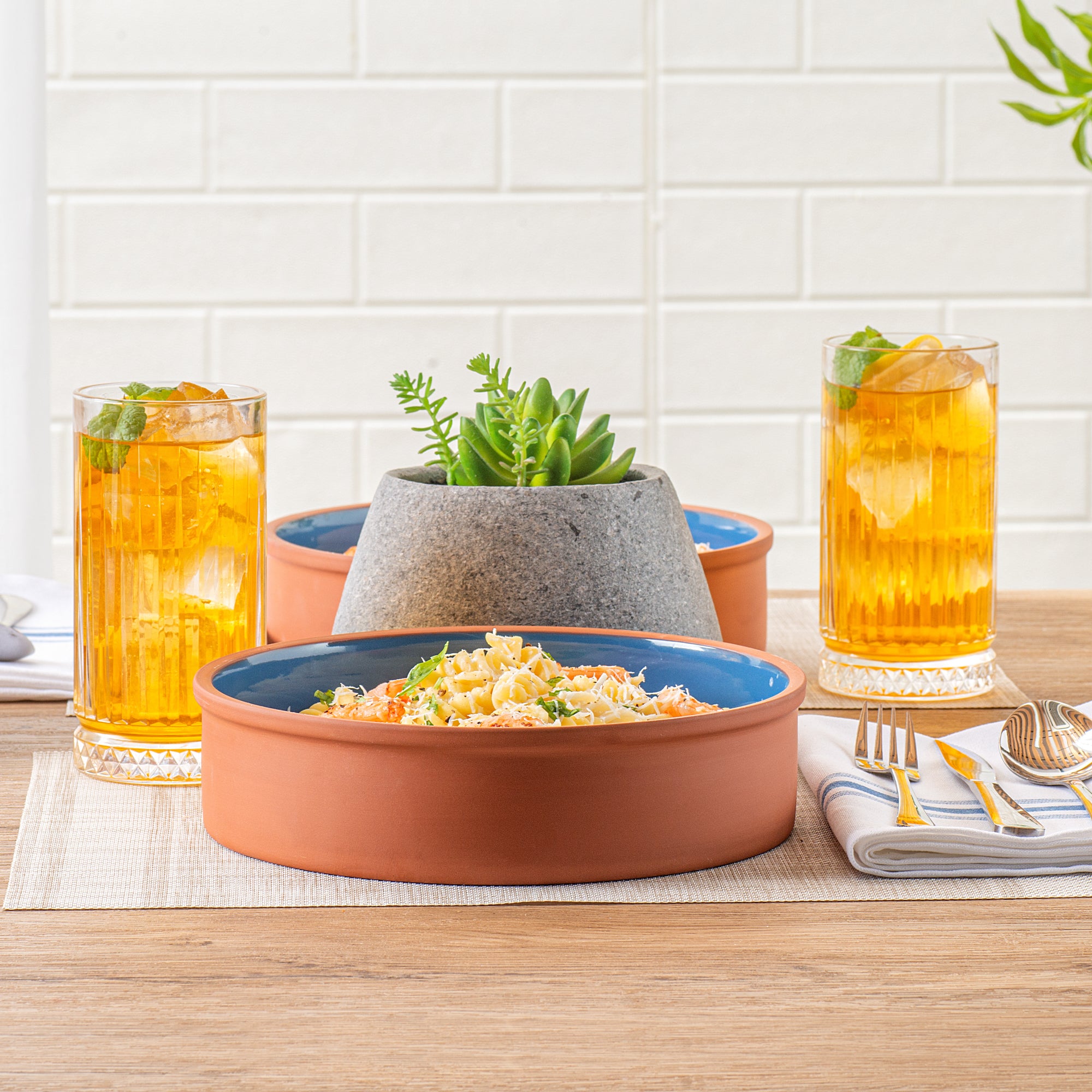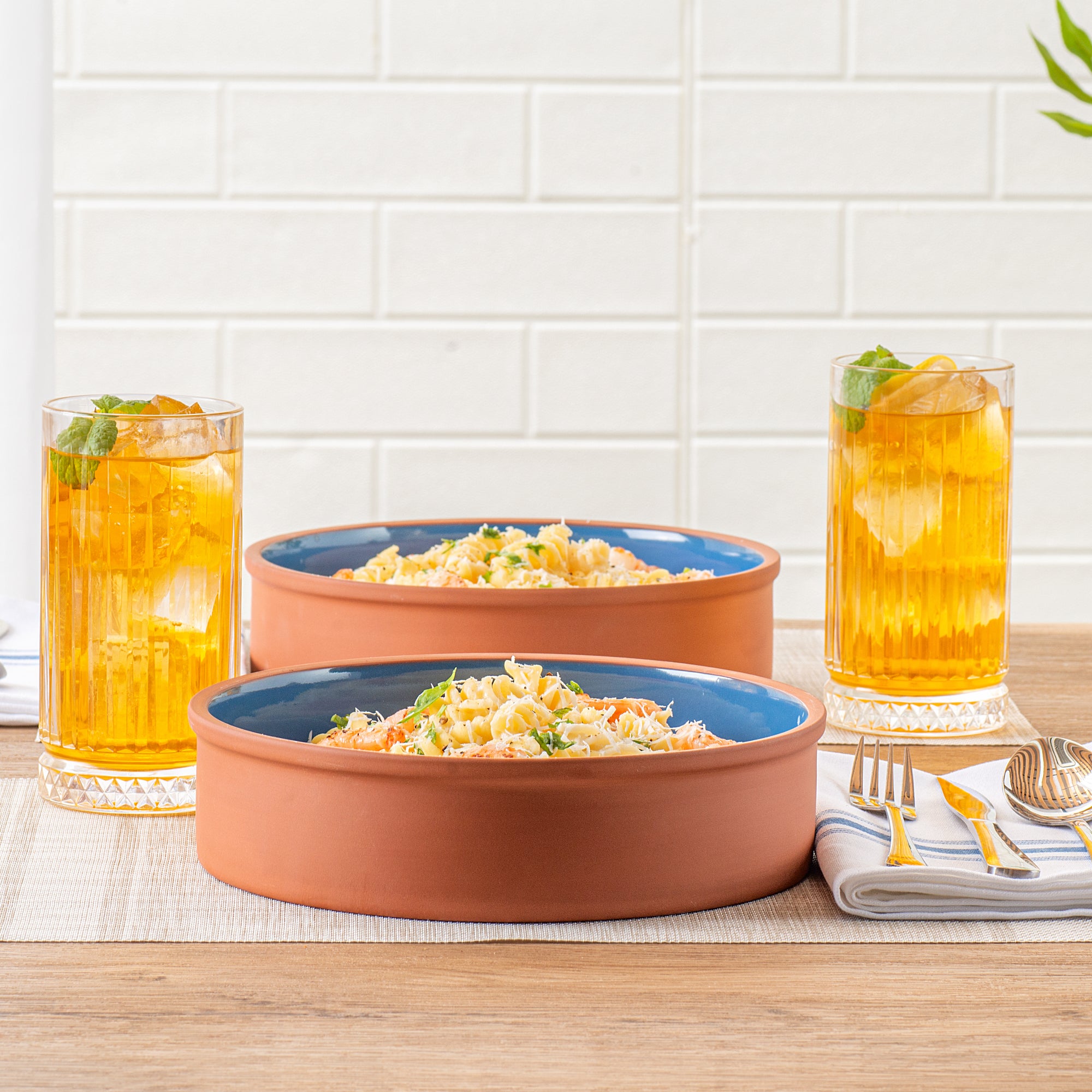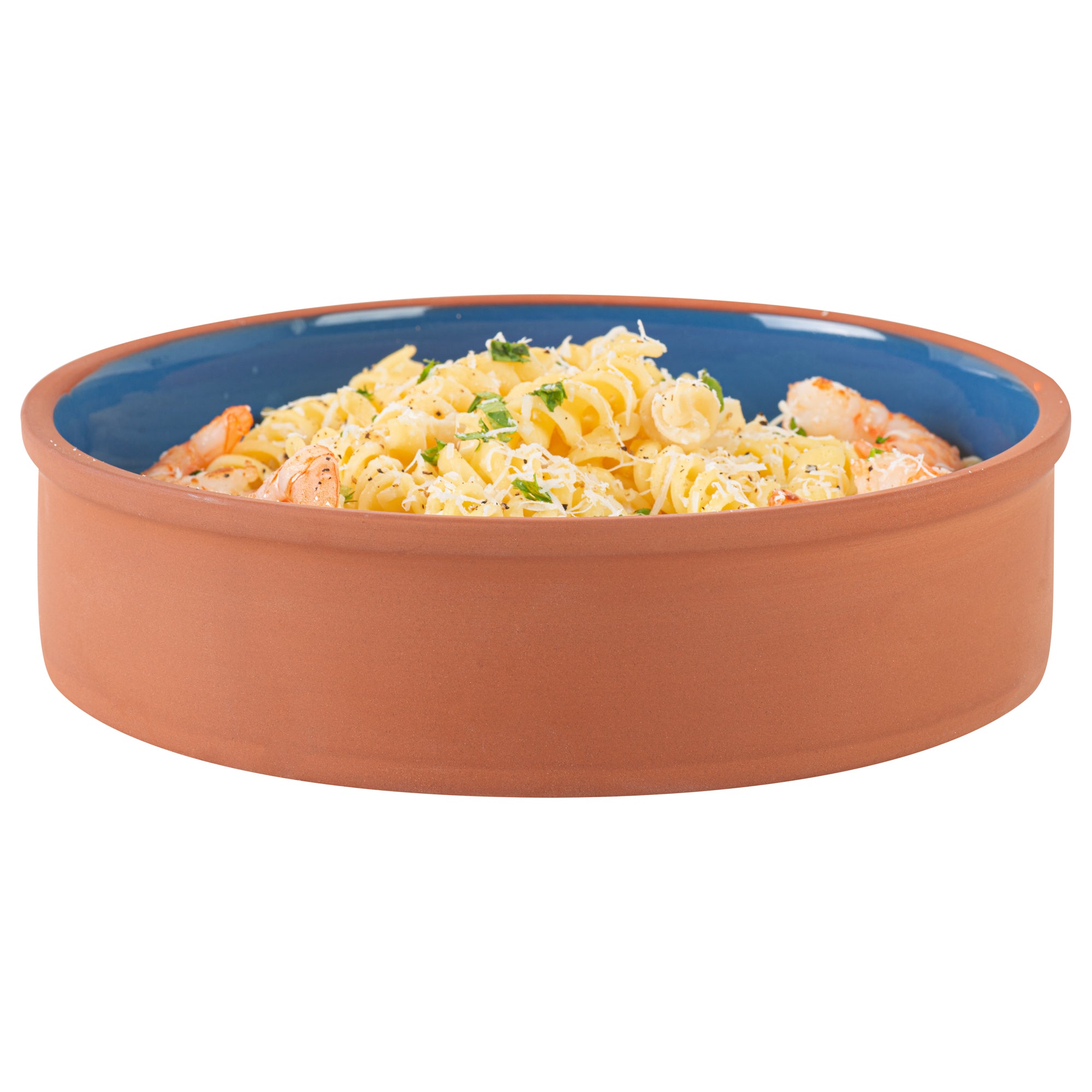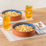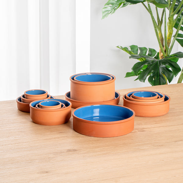51 OZ TERRACOTTA CAZUELA BOWL - BLUE GLAZED INTERIOR, OVEN-SAFE