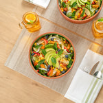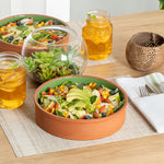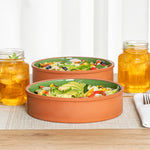 Experience the rustic charm of our Terra Tek 51-ounce Terracotta Cazuela Bowls, a perfect addition to your gourmet kitchenware. These recyclable cazuela bowls showcase a robust terracotta construction, providing impressive durability for your culinary creations. Flaunting a vivid green glazed interior, these greaseproof glazed bowls enhance your food presentation. These glazed serving bowls are oven-ready, allowing you to bake and serve in the same elegant dish. Transform your cooking experience with this microwave cooking bowl, designed to distribute heat for perfectly cooked meals every time evenly. Conveniently freezable, these terracotta cazuelas can transition from freezer to oven without any risk of cracking, preserving your food's freshness. With the convenience of dishwashability, maintaining these reusable cooking bowls is a breeze. Containing a generous capacity of 51 ounces, these dishwashable bowls are ideal for serving hearty meals. With dimensions of 9 inches in diameter by 2.25 inches in height, these gourmet kitchen bowls can comfortably hold large portions without compromising on style. Sold in a 2 count box.