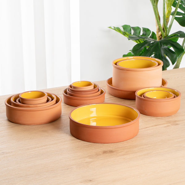 51 OZ TERRACOTTA CAZUELA BOWL - YELLOW GLAZED INTERIOR, OVEN-SAFE
