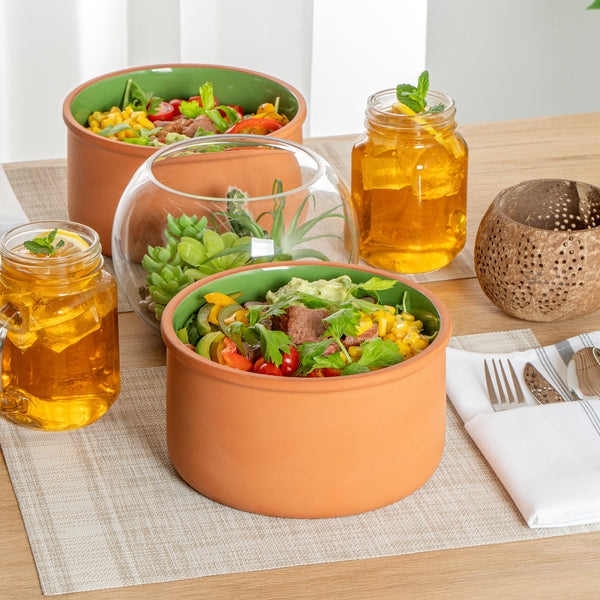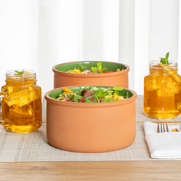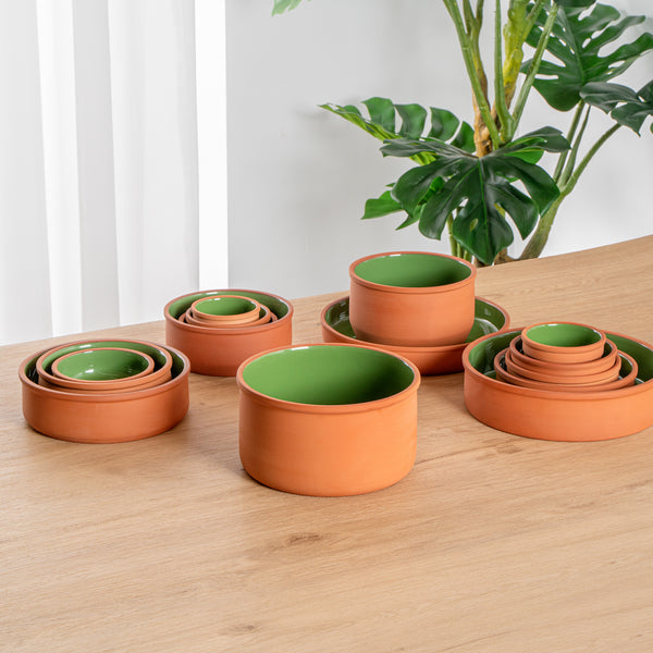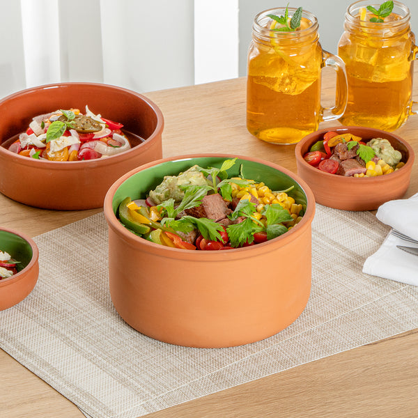 68 OZ TERRACOTTA CAZUELA BOWL - GREEN GLAZED INTERIOR, OVEN-SAFE