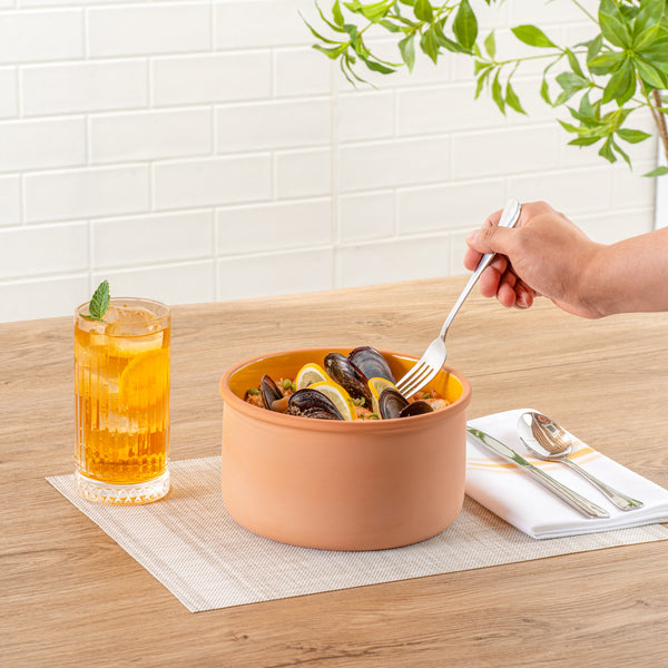68 OZ TERRACOTTA CAZUELA BOWL - YELLOW GLAZED INTERIOR, OVEN-SAFE