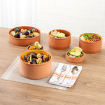 Elevate your presentation with our Terra Tek 68-ounce Terracotta Cazuela Bowls. Crafted from durable terracotta, these recyclable cazuela bowls bring a touch of rustic charm to any culinary setting. With yellow-glazed interiors, these terracotta bowls not only enhance the aesthetic appeal of your dishes but also ensure easy cleaning. These greaseproof glazed bowls are oven-ready, allowing you to bake, roast, or broil with ease. Plus, these microwave cooking bowls enable quick reheating, making them a favorite in busy kitchens. Offering a perfect solution for freezing meals, these gourmet kitchen bowls are freezable, ensuring freshness and quality are locked in. These terracotta cazuelas are dishwashable, enabling effortless cleaning post-meal. With a generous capacity of 68 ounces, these reusable cazuela bowls are perfect for serving large portions or family-sized meals. These terracotta cazuelas measure 7.5 inches in diameter by 4 inches in height, making them a compact yet spacious solution for your serving needs. Sold in a 2 count box.