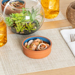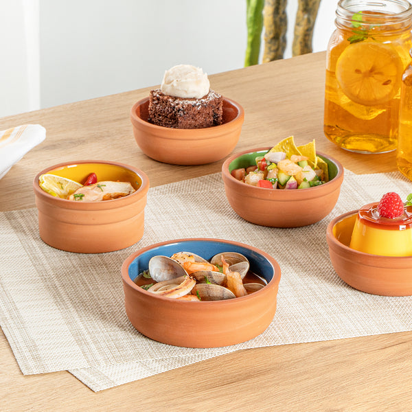 7 OZ TERRACOTTA CAZUELA BOWL - BLUE GLAZED INTERIOR, OVEN-SAFE