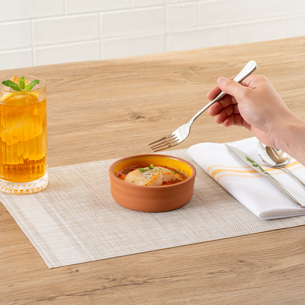 7 OZ TERRACOTTA CAZUELA BOWL - YELLOW GLAZED INTERIOR, OVEN-SAFE