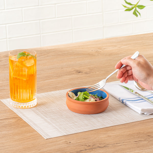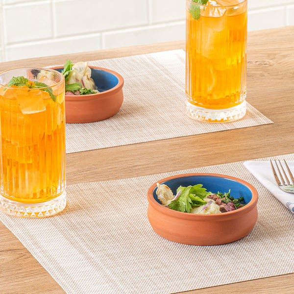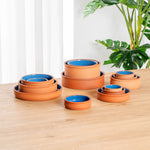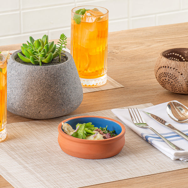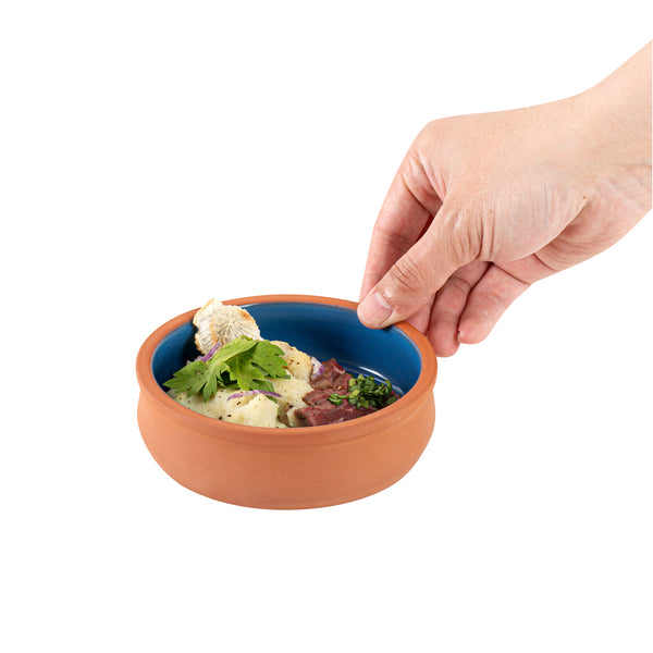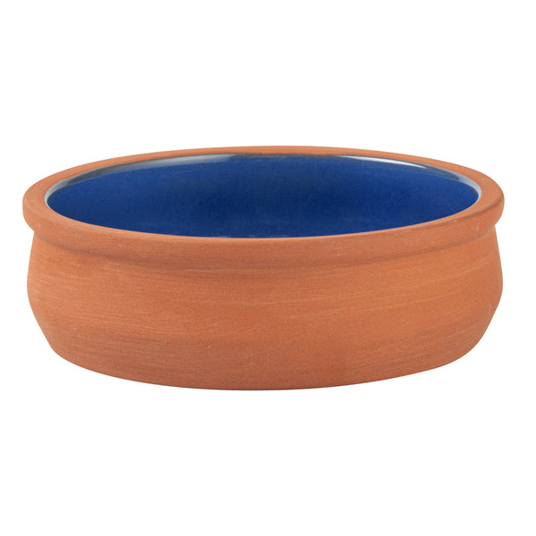 9 OZ TERRACOTTA CAZUELA BOWL - BLUE GLAZED INTERIOR, OVEN-SAFE