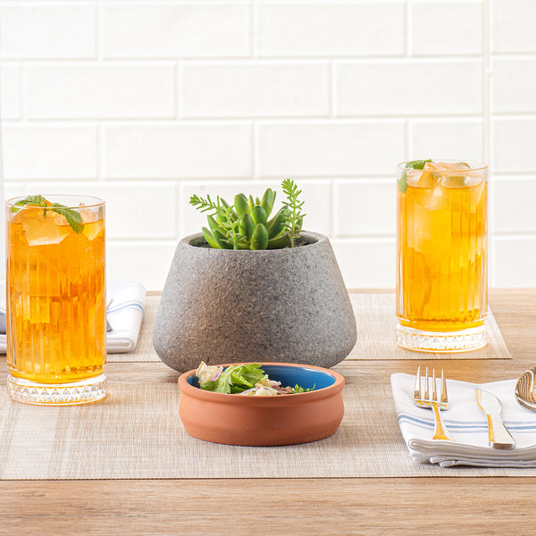 Elevate your culinary presentations with vibrant, durable serving ware. The Terra Tek Glazed Interior Terracotta Bowl is designed with a rich blue glazed interior, enhancing meal presentation for dishes like pastas and salads. This terracotta bowl offers a 4.75-inch diameter and 8.5-ounce capacity, making it ideal for individual portions in tapas restaurants or casual dining settings. Its terracotta construction ensures excellent heat retention and durability, while its dishwashable design enables easy cleanup after a busy service. This cazuela dish is oven, microwave, and freezer safe, supporting a diverse range of menu items and operational needs. Whether serving traditional tapas or side dishes, this tapas bowl optimizes table space and adds rustic charm to any setting. Choose the Terra Tek Glazed Interior Terracotta Bowl to improve efficiency and presentation in your foodservice establishment. Each order includes 10 Terra Tek Glazed Interior Terracotta Bowls.