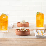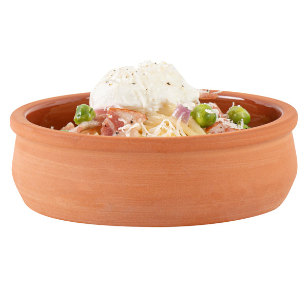 Unleash your culinary creativity with our Terra Tek 9-ounce Terracotta Cazuela Bowls. Crafted from durable terracotta, these recyclable cazuela bowls offer superior heat retention and distribution, ensuring your dishes are cooked evenly and thoroughly. The interior of these greaseproof glazed bowls boasts an aesthetic hue, adding a pop of color to your serving presentation and making them ideal for showcasing a variety of foods. These terracotta cooking bowls are oven-ready, making them perfect cooking bowls for everything from tapas to desserts. Plus, these microwave cooking bowls allow for quick reheating, ensuring your foods are always served at the ideal temperature. For added convenience with make-ahead meals, these reusable cooking bowls are freezable, ensuring their freshness. To streamline post-event cleaning, these terracotta cazuelas are dishwashable. With a generous capacity of 9 ounces, these brown greaseproof glazed bowls are perfect for serving hearty portions. Measuring 4.75 inches in diameter by 1.5 inches in height, these glazed terracotta bowls are ideal for serving all kinds of foods. Sold in a 10 count box.