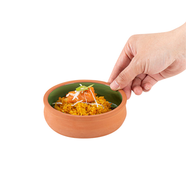 9 OZ TERRACOTTA CAZUELA BOWL - GREEN GLAZED INTERIOR, OVEN-SAFE