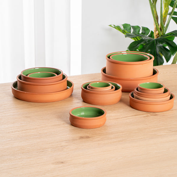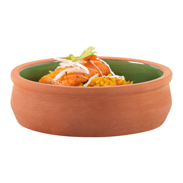 9 OZ TERRACOTTA CAZUELA BOWL - GREEN GLAZED INTERIOR, OVEN-SAFE