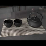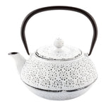 Create an eye-catching tea presentation using our Tetsubin 30-ounce White Cast Iron Teapot. This white teapot has a textured cherry blossom pattern that adds a traditional feel to your tea. Crafted from high-quality cast iron, this Tetsubin pot is built for long-lasting use and withstands high heat to keep drinks at the perfect temperature. The interior of this large white teapot is lined with a black enamel coating which makes it ideal for developing fine blends of tea leaves. This white teapot has a sturdy iron handle for easy handling while pouring. Pair this white teapot with our coordinating 2-ounce and 4-ounce teacups (SKU: RWM0077W and RWM0076W) to create the ultimate tea drinking experience at your tea house, cafe, or restaurant. For easy steeping, this teapot conveniently includes a mesh strainer. To maintain its charming look, carefully hand wash this white teapot and avoid abrasive sponges. Measuring 7.5 inches in length by 6.5 inches in width by 4.5 inches in height, this large white teapot is available in a 1 count box.