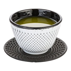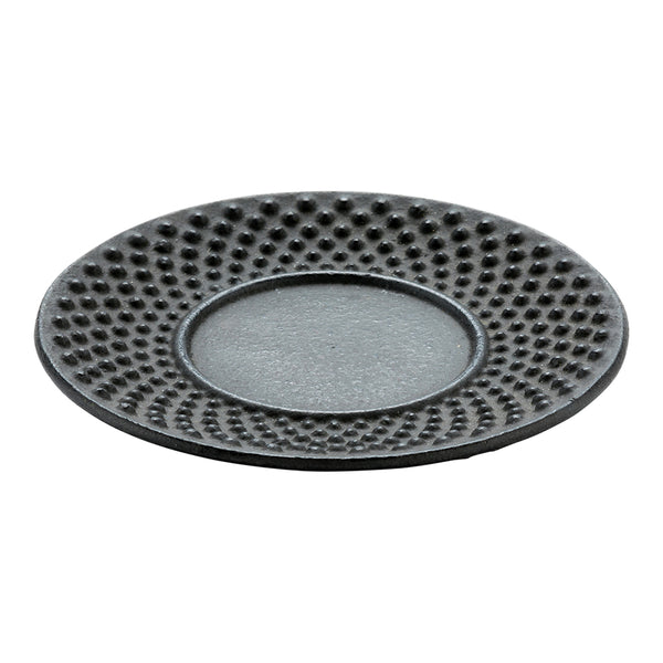 Stylishly serve freshly brewed tea using our Tetsubin Black Cast Iron Coasters. These tea coasters perfectly complement any color of our Tetsubin cast iron teacups to create a stunning decorative contrast. Crafted from high-quality cast iron, these teacup coasters are ideal for protecting tabletop surfaces from high heat. The sleek black finish of these tea coasters adds an elegant touch to teacups. Designed with a hobnail textured surface and rounded disc shape, these iron coasters enhance your presentation for an authentic tea drinking experience. To maintain the look of your tea coasters carefully hand wash them after use. These teacup coasters measure 3.75 inches in length and 3.75 inches in width. Available in a 2 count box.