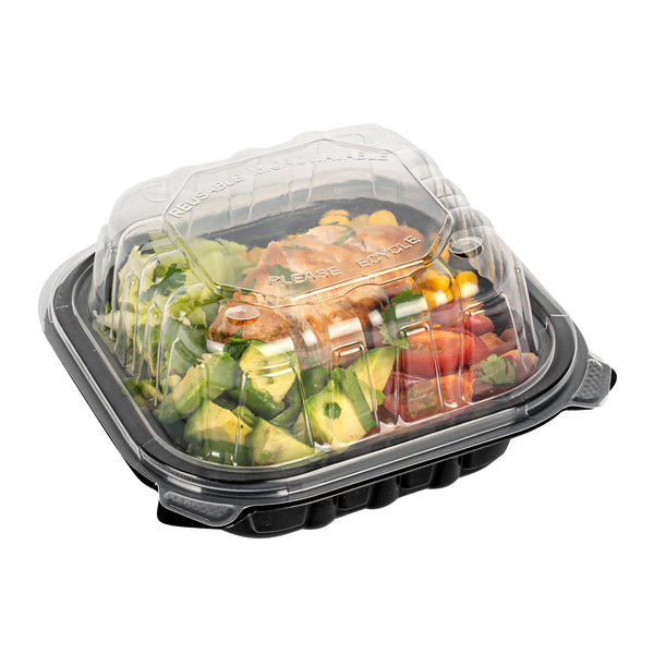 These hinged take out containers feature ventilated lids that reduce condensation to preserve your food's freshness for a long time. A unique design that ensures your food stays fresh.
