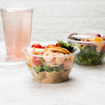 Serve up family-sized salads in our Thermo Tek 16-ounce Clear Plastic Ergo Grip Bowl. Great for restaurants, cafes, and other foodservice establishments, these disposable bowls are made from premium plastic and are conveniently recyclable for an eco-friendly clean up after use. Pair these plastic bowls with our coordinating clear lids (SKU: RWP0587C) to safely deliver fresh meals to customers. These salad bowls are crack-resistant and leak-resistant to prevent messes and spills while on the go. Great for serving dishes at catering events, these plastic bowls are safe for foods. These disposable bowls have a wide base that easily holds a hefty amount of food. Featuring a clear finish, these salad bowls provide full visibility for guests while enhancing food presentation. Perfect for saving storage in your commercial kitchen, these plastic bowls are stackable. Measuring 4.75 inches in diameter by 2.5 inches in height, these disposable bowls hold up to 16 ounces. Shipped in a 50 count box. Lids are available and sold separately.