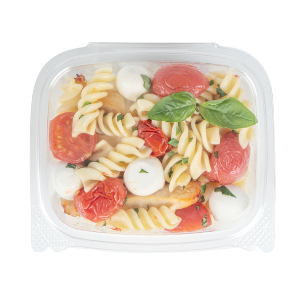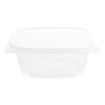 Keep delivery or take out orders protected using our Thermo Tek 16-ounce Rectangle Clear Plastic Deli / Snack Containers. These plastic deli containers are equipped with an anti-fog design to maintain full visibility of meals by avoiding condensation build-up. To easily take dishes to go, these plastic snack containers are constructed with hinged lids that create a tight-fitting seal. For storing prepped ingredients or pre-made grab-and-go items, these hinged plastic containers are freezable. With a transparent finish, these deli containers with lids offer a crystal-clear view of fare to quickly identify orders. These clear deli containers are made from durable PET plastic to reliably contain a variety of appetizers, entrees, or desserts. To reduce your establishment's carbon footprint, these deli food containers are recyclable. These clear deli containers can hold up to 16 ounces and measure 5.75 inches in length by 5 inches in width by 2.5 inches in height. Sold in a 100 count box.