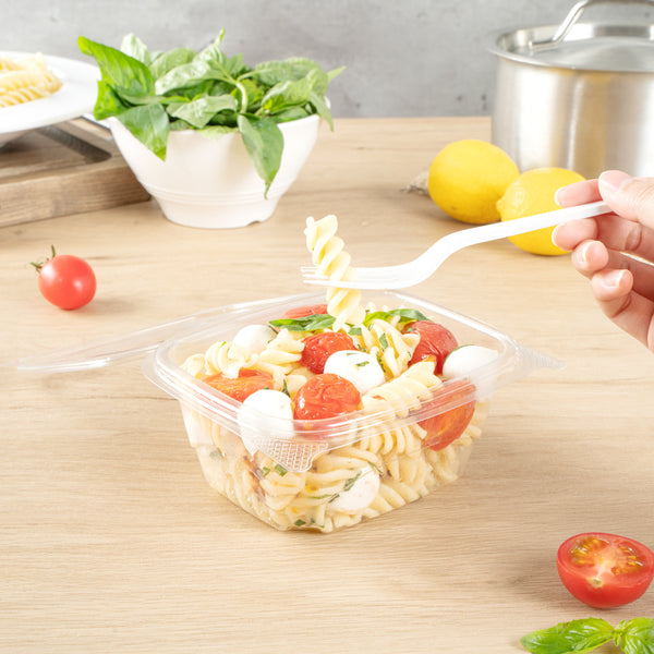 16 OZ PLASTIC DELI / SNACK CONTAINER - WITH HINGED LID, ANTI-FOG