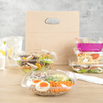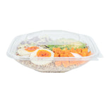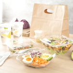 Provide a clear view of packaged meals with our Thermo Tek 25-ounce Square Clear Plastic Take Out Salad Bowls. With an anti-fog design, these plastic salad containers avoid condensation build-up to maintain full visibility. These plastic food containers are equipped with included lids to create a tight-fitting seal for securely transporting delivery or take out orders. Featuring a crystal clear finish, these freezable containers with lids allow your employees and customers to easily identify meals. Constructed from durable PET plastic, these clear salad bowls can effortlessly hold dishes. To promote a positive impact on the planet, these salad containers are recyclable. These salad bowls can contain up to 25 ounces and measure 7.5 inches in length by 2.75 inches in height. Sold in a 100 count box.