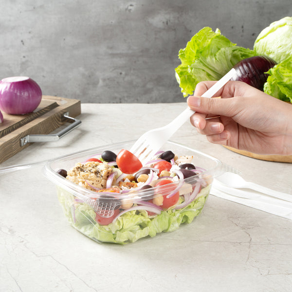 32 OZ PLASTIC DELI / SNACK CONTAINER - WITH HINGED LID, ANTI-FOG