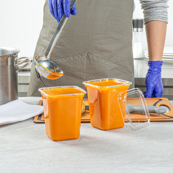 Ensure fresh and spill-free meal deliveries with our Thermo Tek Grease-Resistant Clear Deli Container. Designed with a grease-resistant and leak-resistant construction, this clear deli container keeps food fresh longer by preventing unsightly messes and maintaining customer satisfaction. Its transparent design allows easy identification of contents, making it a valuable asset in fast-paced kitchen environments. Made from durable PET plastic, this disposable food container supports eco-conscious dining establishments. With its freezer-safe feature, it is ideal for meal prep storage, ensuring your pre-packaged salads and snacks remain in optimal condition. Measuring 4.53 inches in length and width and 5.31 inches in height, it offers ample storage with a 32-ounce capacity for delis and sandwich shops. Experience the practicality and reliability of our plastic container with lid to streamline your operations. Each order includes 100 Thermo Tek Grease-Resistant Clear Deli Containers.