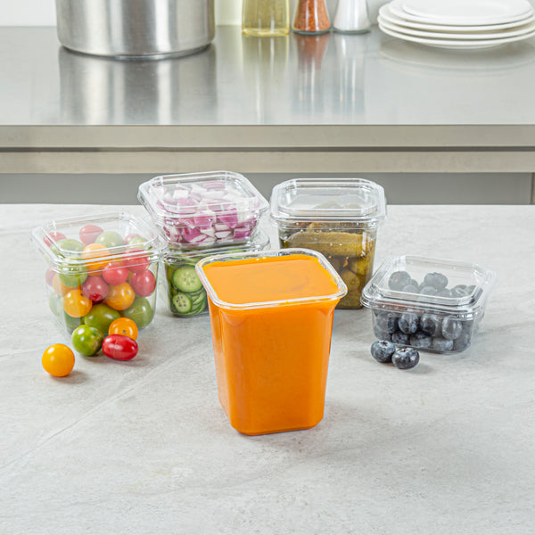 Ensure fresh and spill-free meal deliveries with our Thermo Tek Grease-Resistant Clear Deli Container. Designed with a grease-resistant and leak-resistant construction, this clear deli container keeps food fresh longer by preventing unsightly messes and maintaining customer satisfaction. Its transparent design allows easy identification of contents, making it a valuable asset in fast-paced kitchen environments. Made from durable PET plastic, this disposable food container supports eco-conscious dining establishments. With its freezer-safe feature, it is ideal for meal prep storage, ensuring your pre-packaged salads and snacks remain in optimal condition. Measuring 4.53 inches in length and width and 5.31 inches in height, it offers ample storage with a 32-ounce capacity for delis and sandwich shops. Experience the practicality and reliability of our plastic container with lid to streamline your operations. Each order includes 50 Thermo Tek Grease-Resistant Clear Deli Containers.