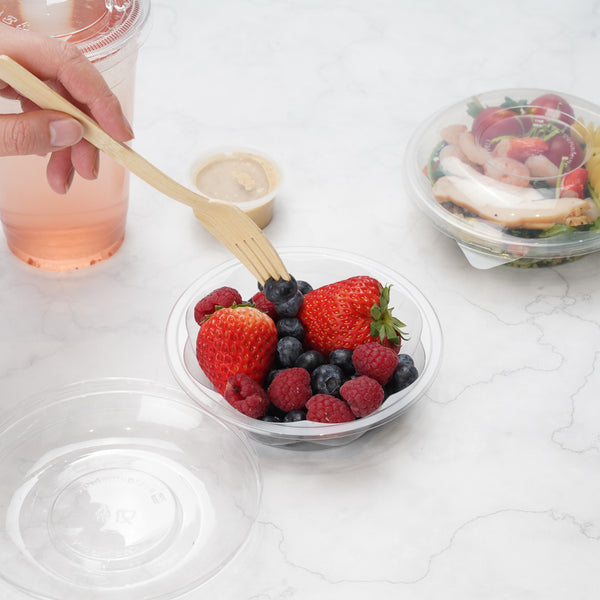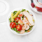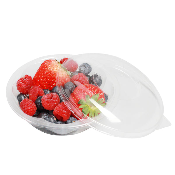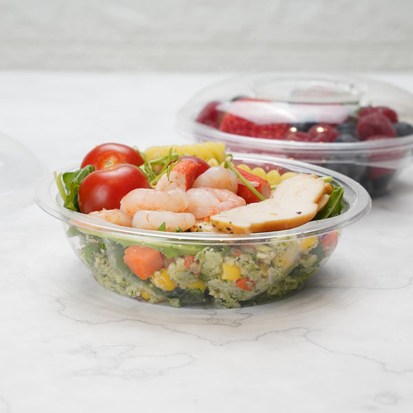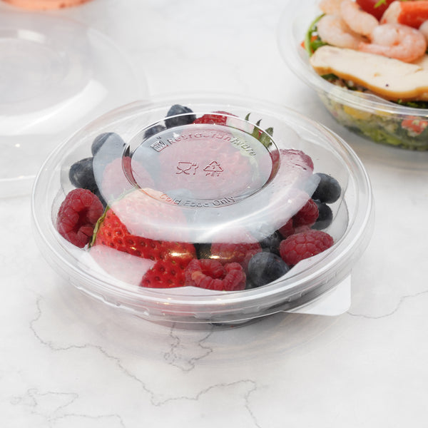 Serve your tasty meals in our Thermo Tek 8-ounce Clear Plastic Ergo-Grip Bowls. With a crystal clear finish, these take out bowls beautifully display your leafy green salads for a mouth-watering look. Crafted from high-quality plastic, these carry out containers are recyclable to shorten the cleaning process at your bakery, cafe, kiosk, or catering service. These recyclable bowls are crack-resistant and leak-resistant to expertly contain your saucy meals. Pair these clear plastic bowls with their coordinating lids to keep your food tasting fresh. With a stackable design, These salad lunch containers save space in your restaurant's storage area. Designed with a wide base, these disposable bowls provide superior balance to keep them from tipping over and creating a mess. These 8-ounce bowls measure 4.75 inches in diameter and 1.25 inches in height. Sold in a 50 count box. Lids (SKU: RWP0587C) are available and sold separately.