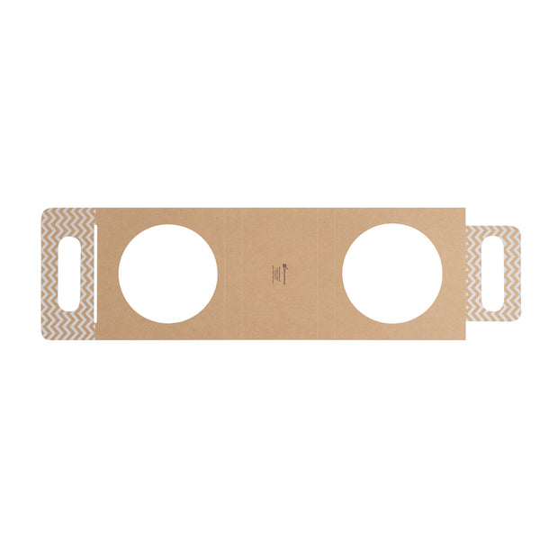 Provide customers with a convenient way to carry their meals with our Thermo Tek Kraft Paper Sphere Salad Container Carriers. Pair these sphere container carriers with our compatible Thermo Tek sphere containers to easily take meals to go (SKU: RWP0575C). Constructed from kraft paper, these food carriers are durable to hold hefty fares. Designed with a kraft finish and a white chevron pattern on the handle, these salad container carriers provide a chic, rustic look to your establishment's take out orders. To save space in your kitchen or storage area, these paper food carriers are shipped flat. To promote a positive impact on the planet, these food container holders are recyclable and biodegradable. These food container carriers measure 22.6 inches in length by 6.3 inches in width. Sold in a 50 count box. This item will only degrade outside of the traditional solid waste stream. Compatible containers are available and sold separately.