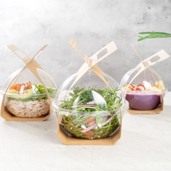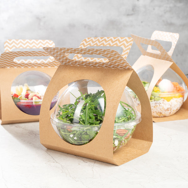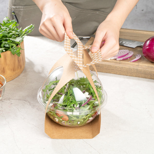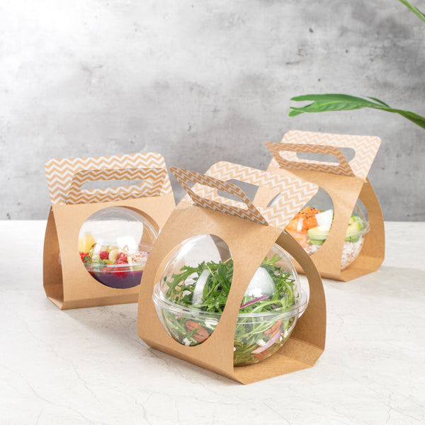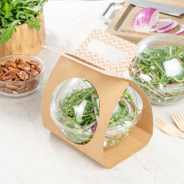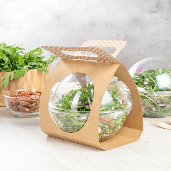 KRAFT PAPER SPHERE SALAD CONTAINER CARRIER - FITS 28 OZ