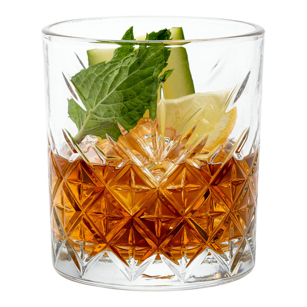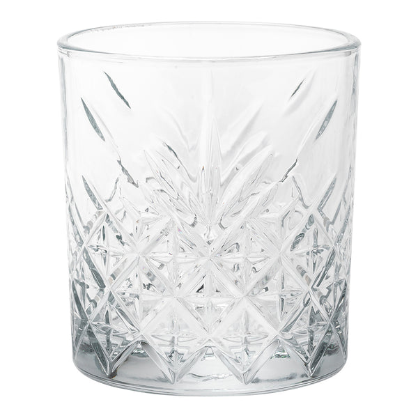 Present signature cocktails with a vintage-inspired look in our Timeless 12-ounce Double Old Fashioned Glasses. Featuring intricately etched designs, these double old fashioned glasses create a sparkling finish to elegantly enhance drink presentations at your bar, hotel, restaurant, and other foodservice establishment. These durable old fashioned glasses are equipped with chip-resistant rims and a weighted base to preserve their premium construction for long-lasting commercial use. Crafted from lead-free glass, these vintage double old fashioned glasses expertly present the vibrant colors and ingredients in your handcrafted cocktails. These old fashioned glasses are manufactured with impressive precision and durability to endure commercial dishwashers. Containing up to 12 ounces, these etched cocktail glasses measure 3.25 inches long by 3.75 inches tall and are available in a 12 count box.
