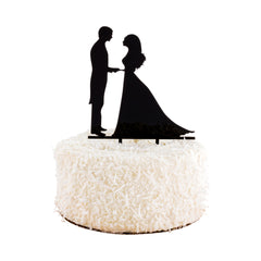 BLACK ACRYLIC SILHOUETTE BRIDE AND GROOM CAKE TOPPER