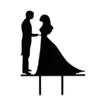 BLACK ACRYLIC SILHOUETTE BRIDE AND GROOM CAKE TOPPER