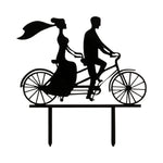BLACK ACRYLIC SILHOUETTE BRIDE AND GROOM CAKE TOPPER - TANDEM BIKE
