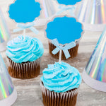 BLUE PAPER DIY PERSONALIZED CAKE TOPPER - BOW, SILVER GLITTER RIM