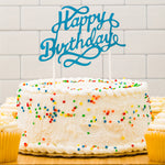 BLUE PAPER HAPPY BIRTHDAY CAKE TOPPER - GLITTER