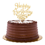 GOLD ACRYLIC HAPPY BIRTHDAY CAKE TOPPER - MIRRORED, SWIRLS