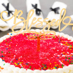 MIRRORED GOLD ACRYLIC BLESSED CAKE TOPPER
