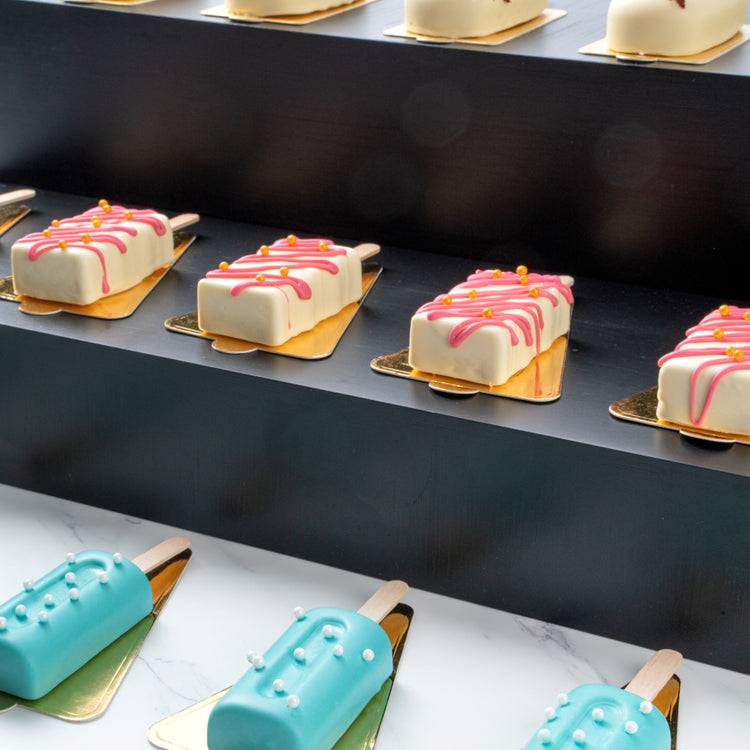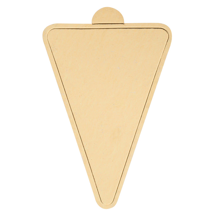 Uniquely present your small appetizers and desserts with our Pastry Tek Triangular SturdyServe Bases. Featuring a polished gold finish with a triangular shape, these modern small paper plates instantly beautify any tablescape, decor, or venue. Crafted from high-quality paper, these mini serving dishes are conveniently disposable and add a trendy look to your mini treats. Use these chic gold paper plates to stylishly serve a delicious slice of vanilla buttermilk cake at a catered wedding reception, or to elegantly display sweet slices of apple pie at a bakery. These small triangle plates measure 3 inches long by 4.7 inches wide and ship in a 200 count box.