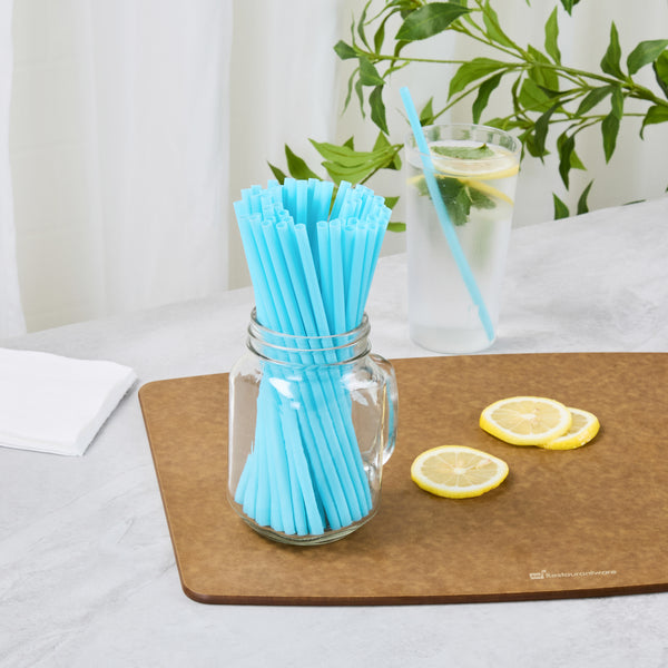Enhance your beverage service with eco-friendly sipping solutions. Vanish Compostable Blue Plastic Straws offer a sustainable alternative with their home compostable PHA plastic, reducing environmental impact while providing a durable and flexible option. The unwrapped straw design not only minimizes waste but also speeds up service during rush hours, making it perfect for busy cafes and quick-service restaurants. Measuring 7 3/4 inches in length and featuring a 6 millimeter width, these straws are ideal as a cocktail straw, effortlessly accommodating juices and smoothies. The vibrant blue color adds a lively touch to any drink presentation, boosting visual appeal and customer satisfaction. By choosing these straws, you align with eco-conscious practices and enhance operational efficiency. Each order includes 1000 Vanish Compostable Blue Plastic Straws.